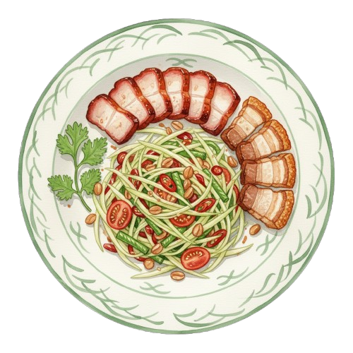 We bring authentic Thai recipes straight from the streets of Bangkok, featuring signature rice dishes like Hainanese Chicken Rice and BBQ Pork & Crispy Pork Belly, fresh and zesty papaya salads, comforting soups, spicy salads, and bold flavors — all at affordable prices without compromising quality.